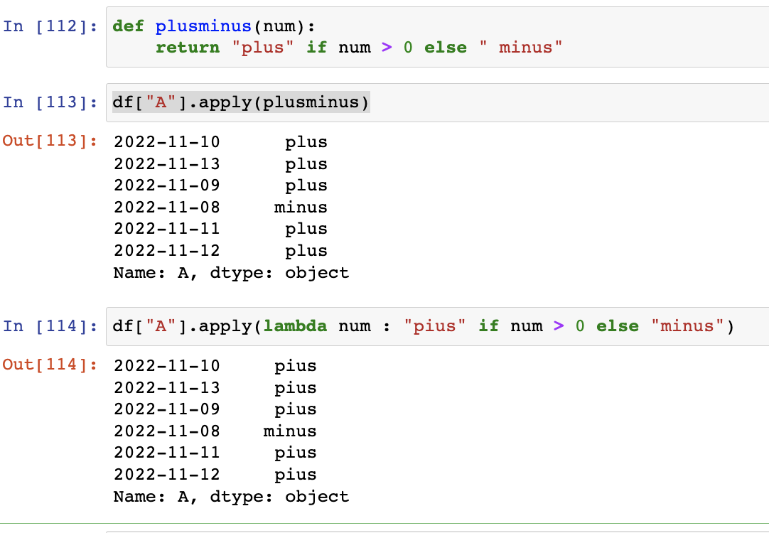 ex)df["A"].apply("sum") : A열의 데이터들의 합