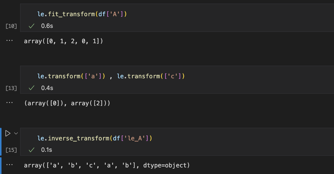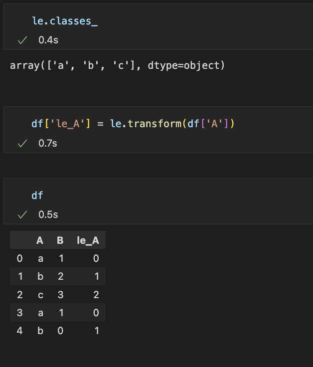 LabelEncoder를 import해준다. 이를 le변수에 담아준 뒤 df['A']를 fit(학습)시켜준다.