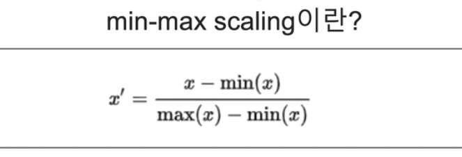 - minMaxScaler는 min을 0 / max를 1로 준 데이터다.