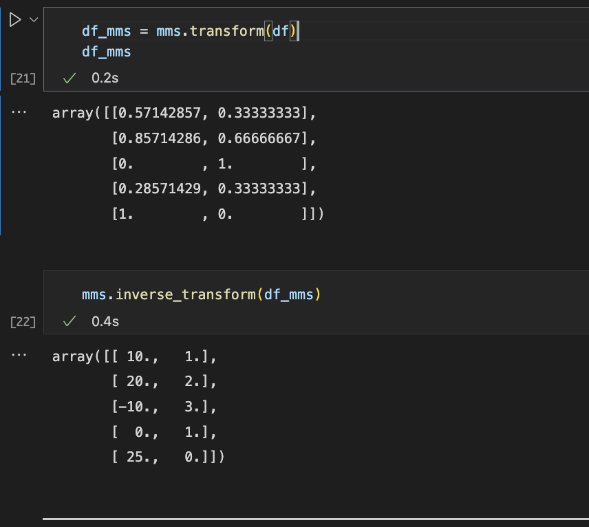 역변환은 마찬가지로 inverse_transform해주면 된다.