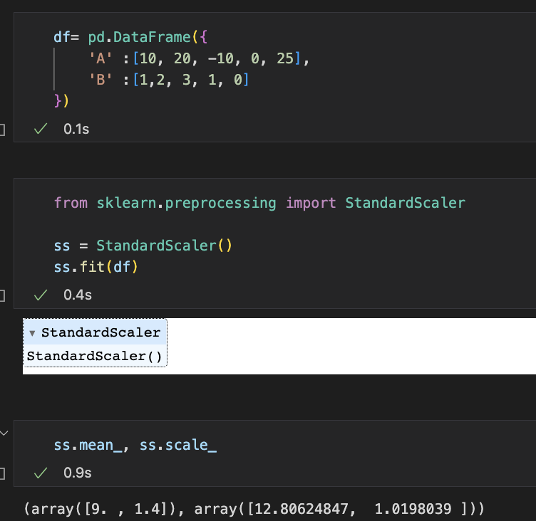 .mean_ / .scale_로 분모와 분자에 들어갈 평균과 표준편차를 확인한다.