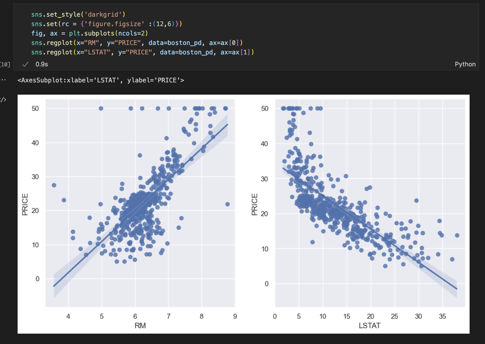 -> RM과 LSTAT와 PRICE의 관계에 대해 좀 더 관찰해본다.
