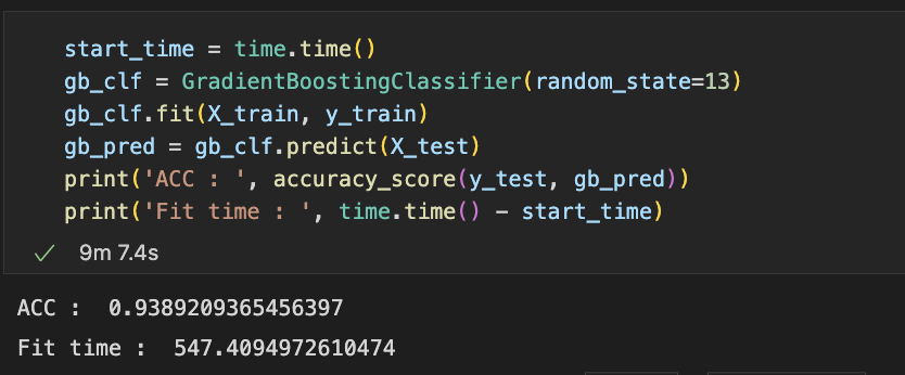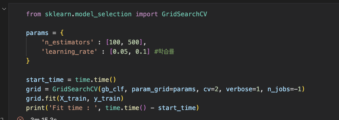 - 일반적으로 GBM의 성능 자체는 랜덤포레스트보다 좋다고 알려져 있으나, sklearn의 GBM은 속도가 아주 느리다.