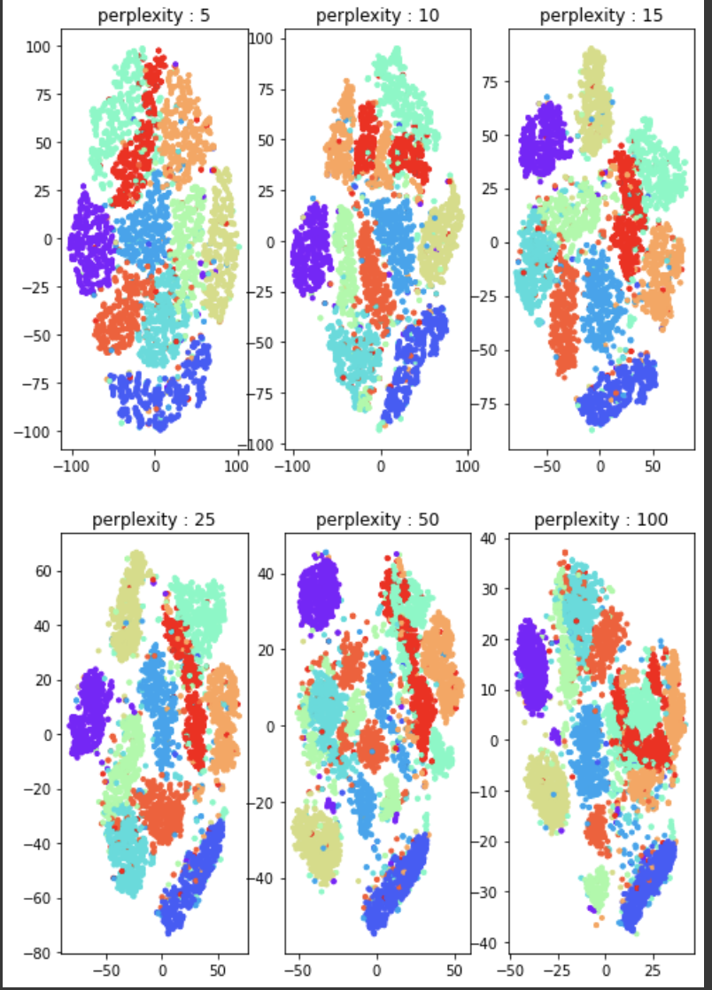 perplexity : 근접성. 하이퍼파라미터에 맞춰 수정한다.(tunning 요소)