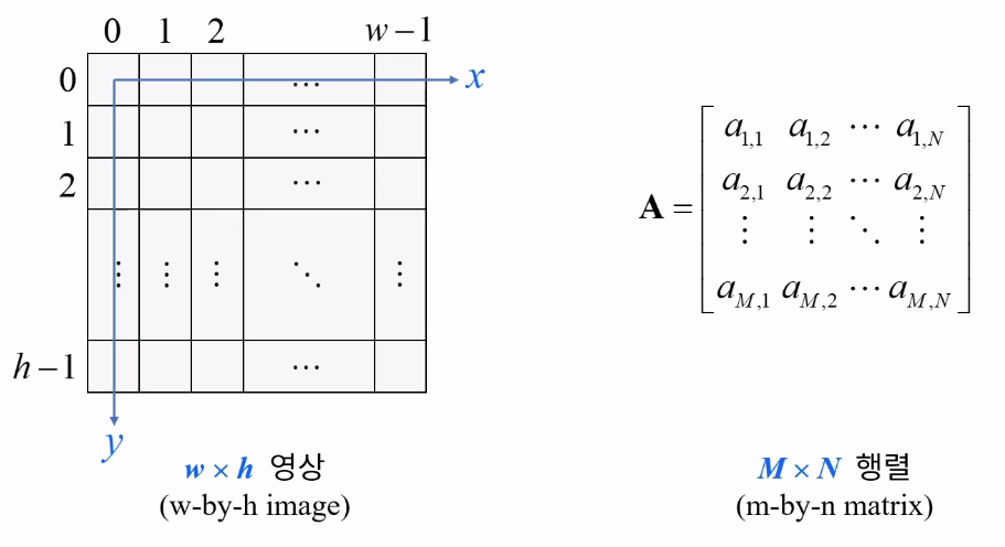 영상의 크기는 가로 x 세로인 반면, 행렬은 세로 x 가로로 표현된다.