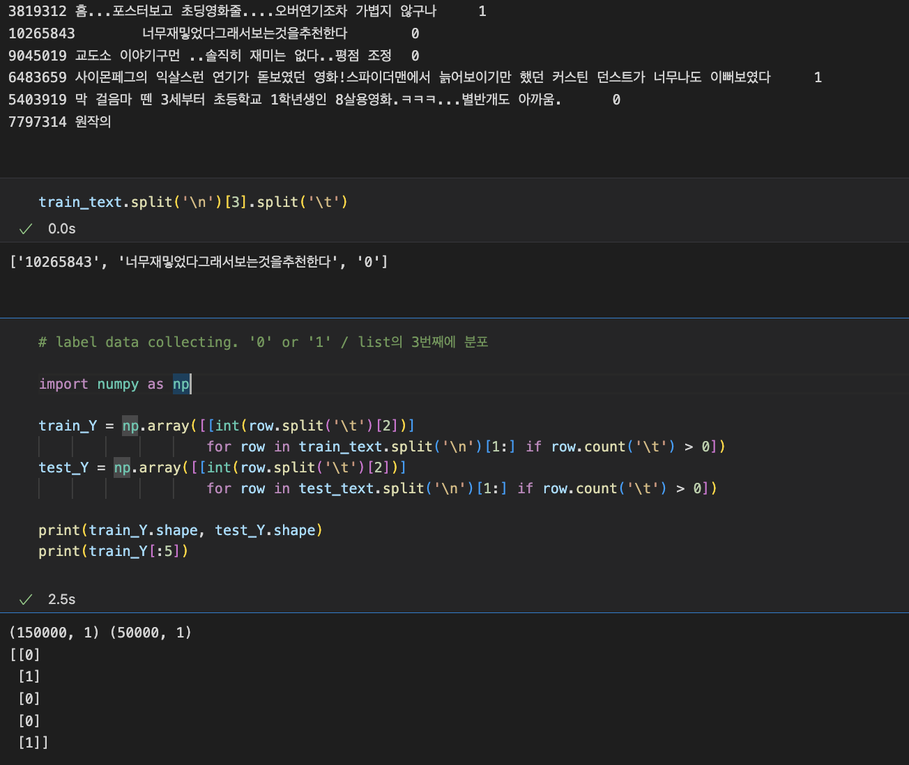 data를 불러오고 label위치를 찾고, label 정보를 모은다.