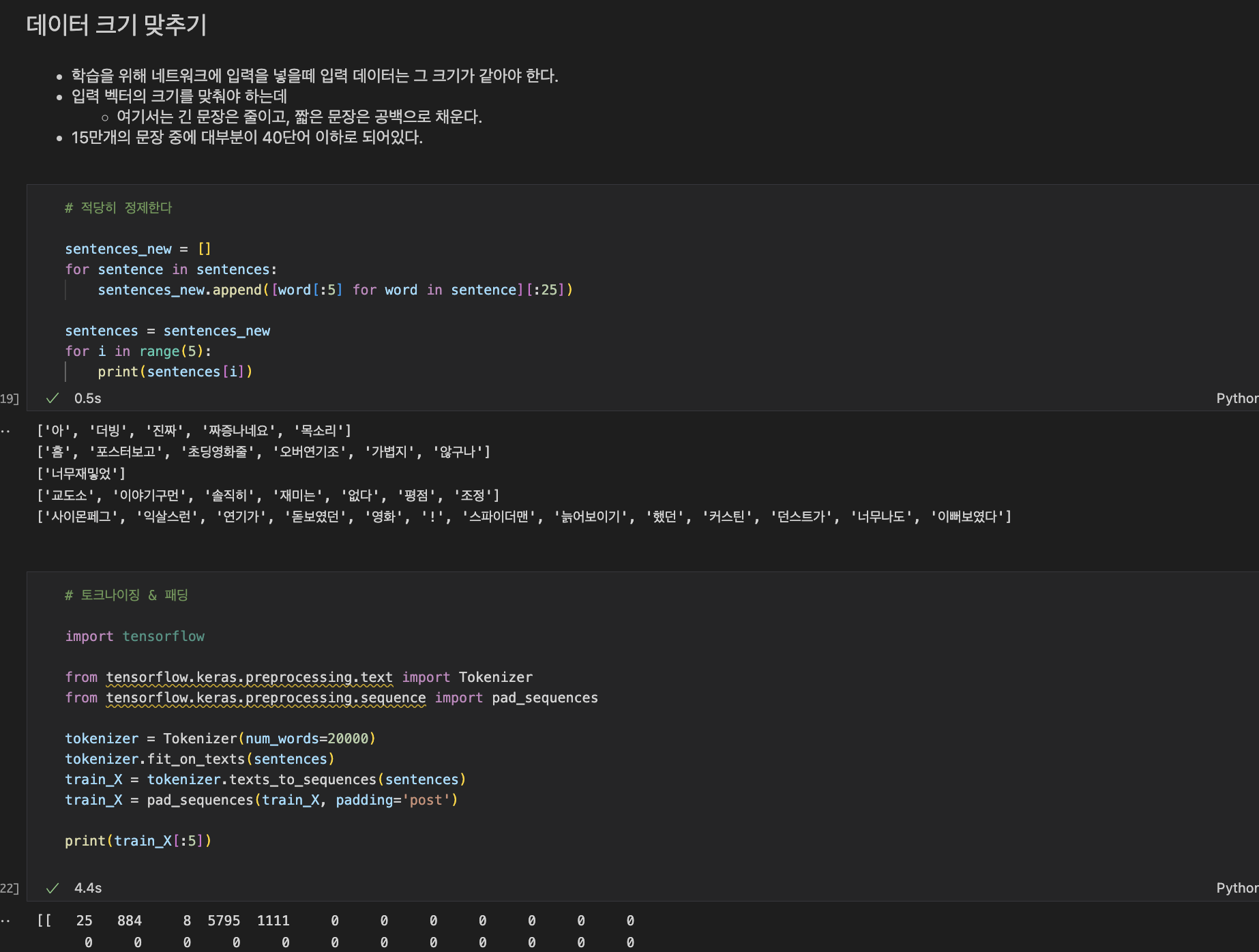 25개 이하의 문장은 0을 채워준다.