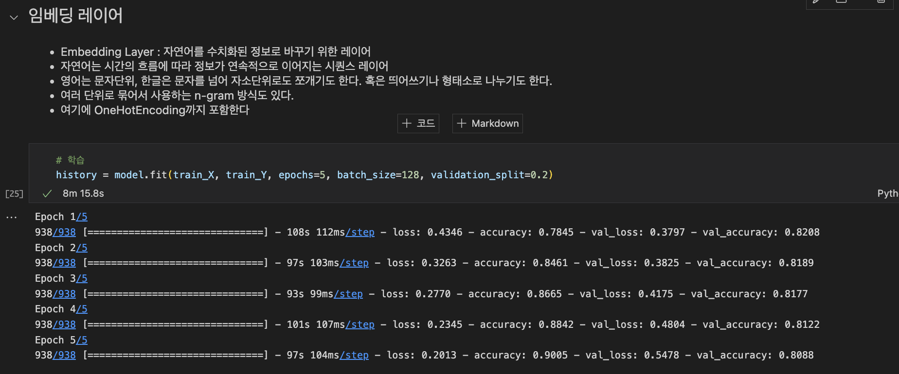 Embedding을 사용하면 자연어 처리임을 알아서 습득한다.