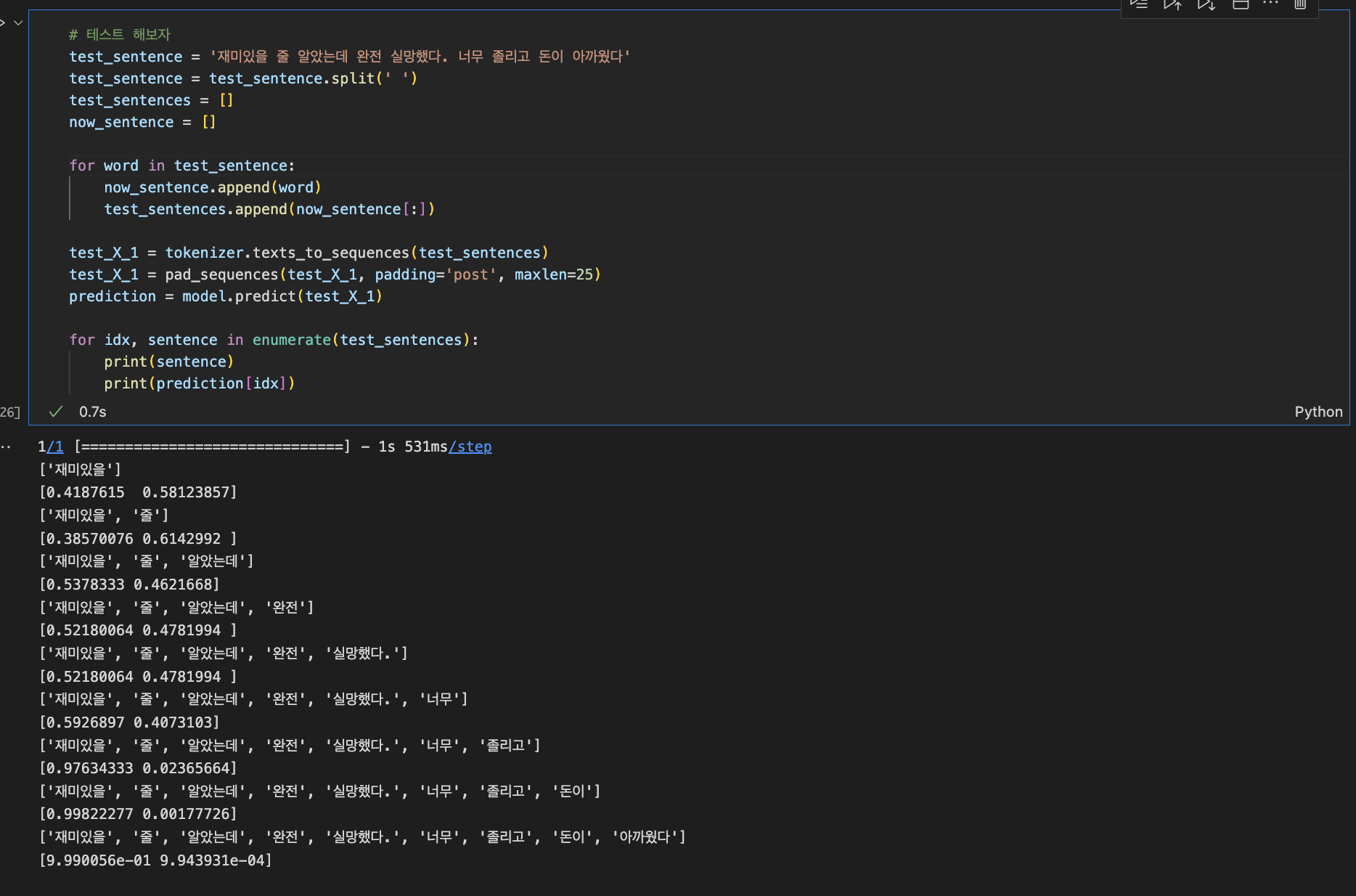 negative 문장을 test로 넣어봤다.