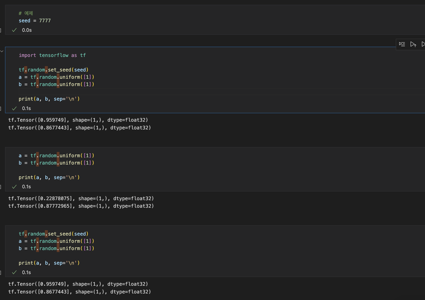 (주의할 점은 해당 개발물에 사용되는 난수가 모두 Tensorflow에서 생성된 것이 아닐수도 있다는 점이다.)
