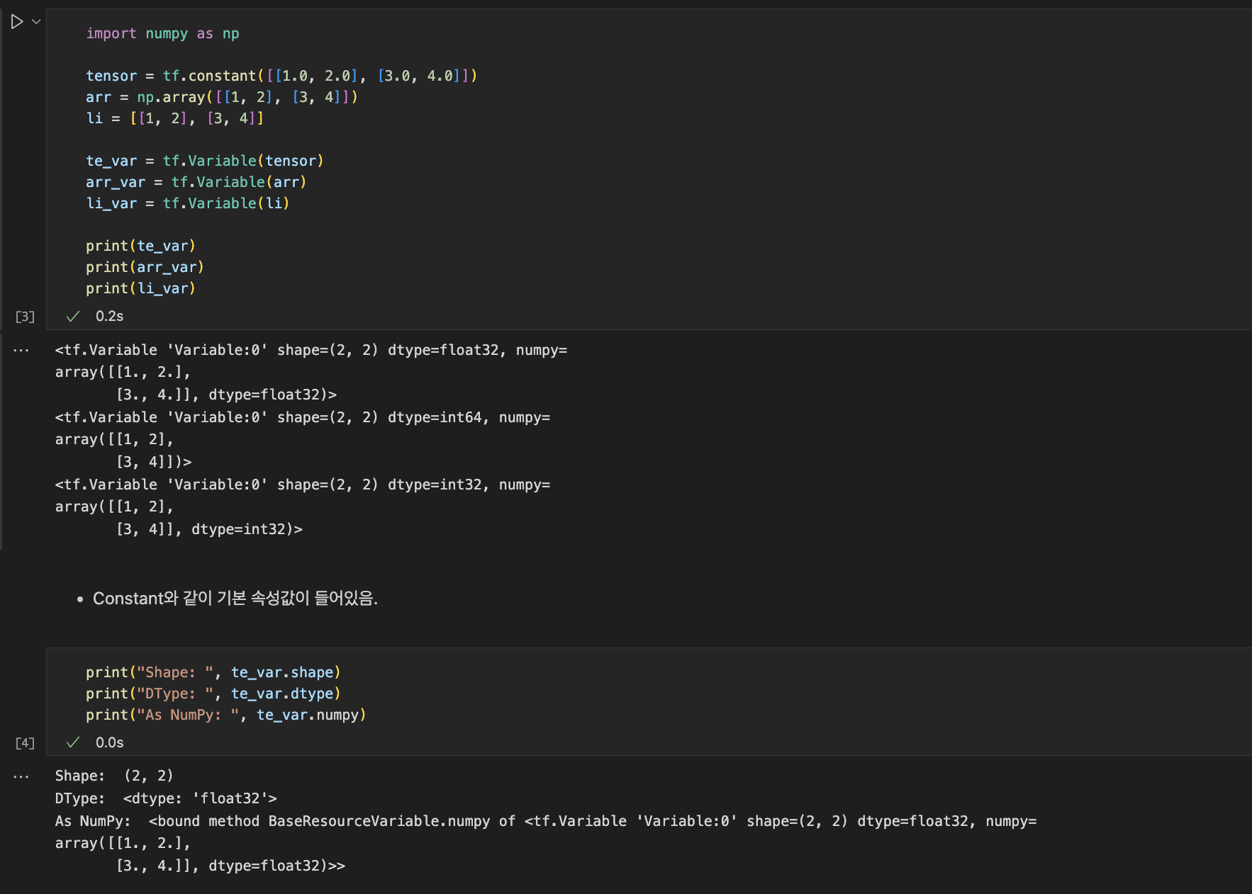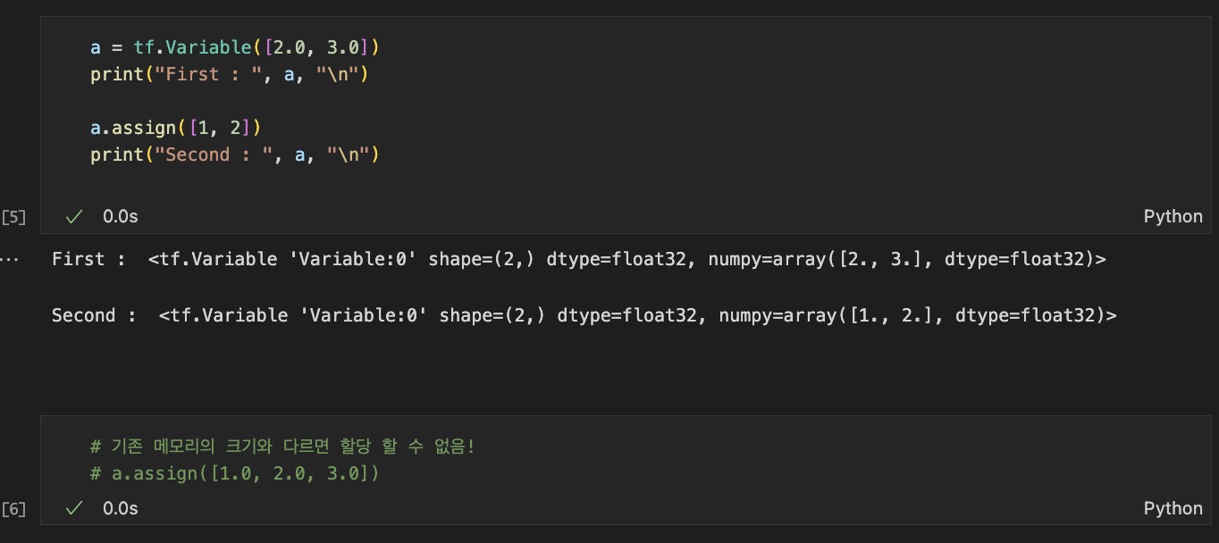 변수는 기존 텐서의 메모리를 재사용하여 텐서를 재할당 할 수 있다.