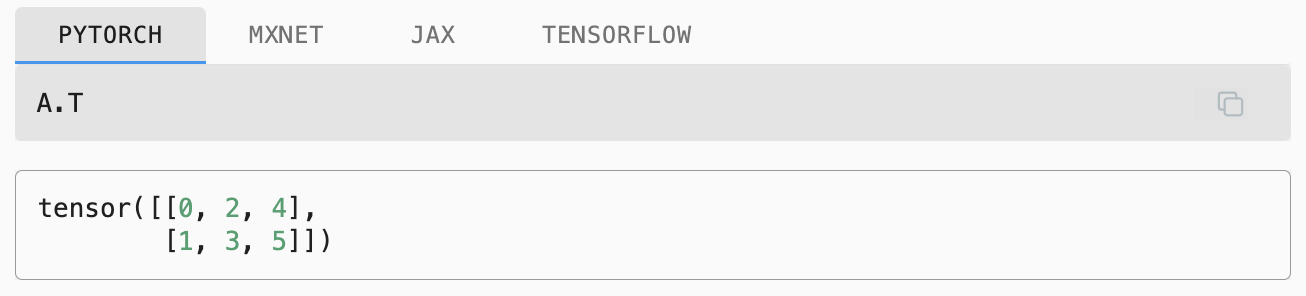 In code, we can access any matrix’s transpose as follows: