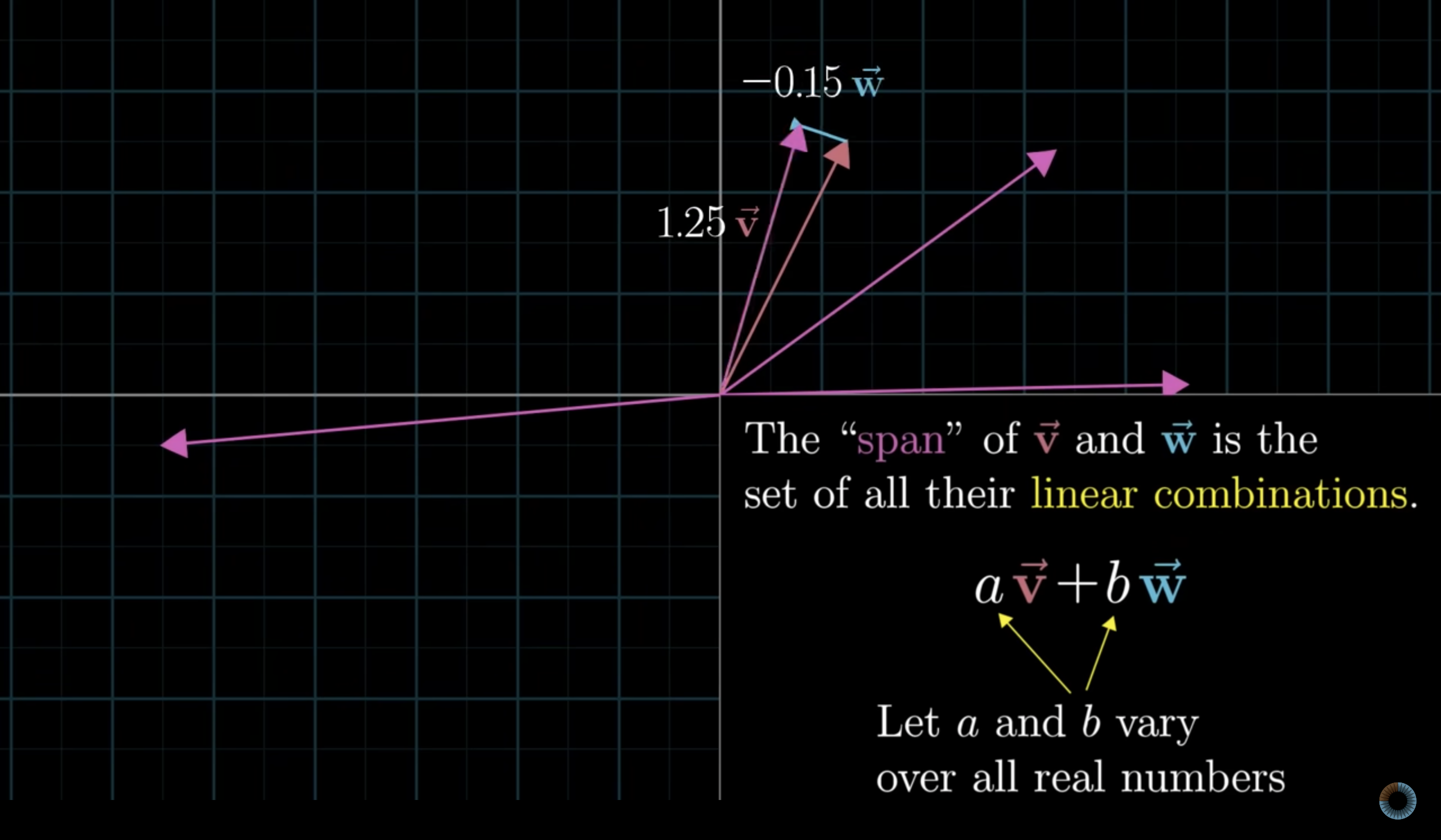 주어진 벡터 쌍의 선형 결합으로 다다를 수 있는 모든 결과 벡터의 집합을 두 벡터의 생성(선형생성, spam)이라고 부른다.