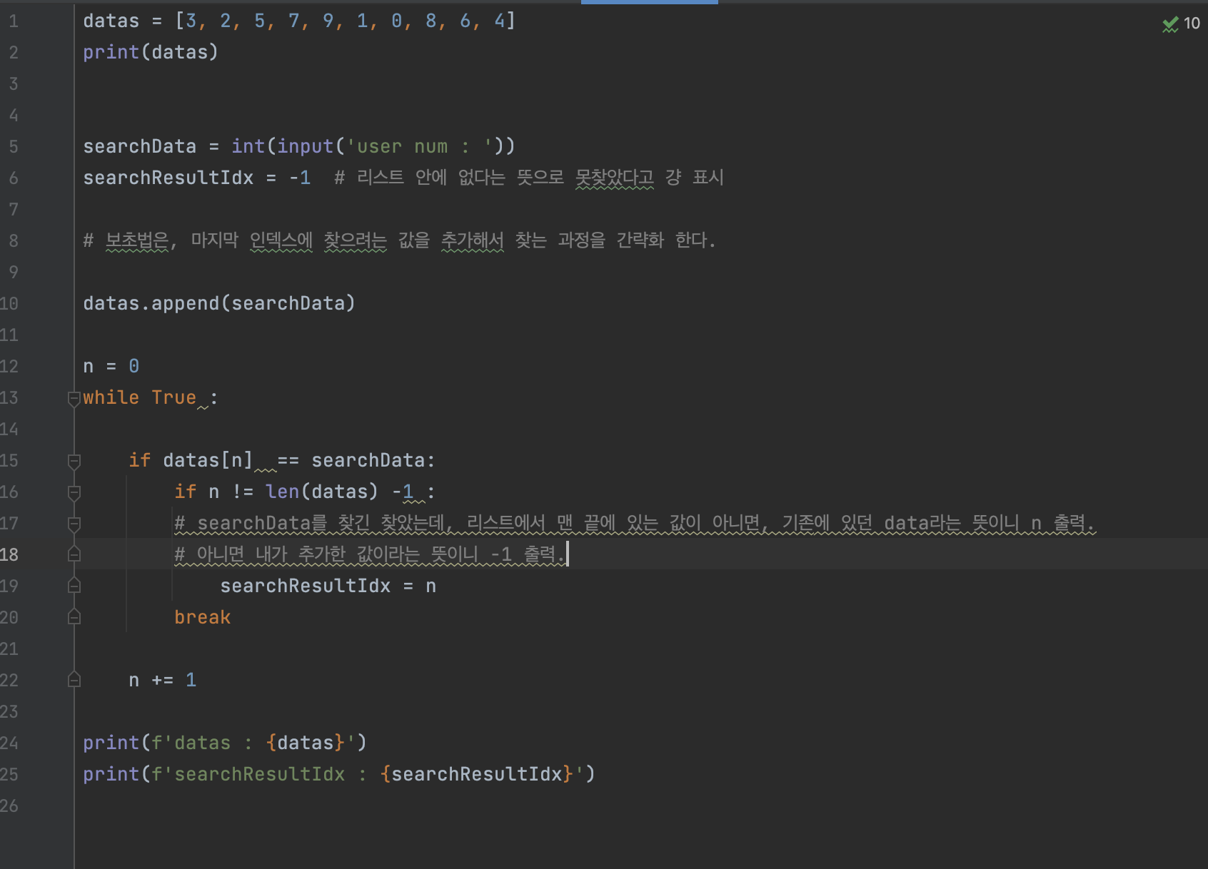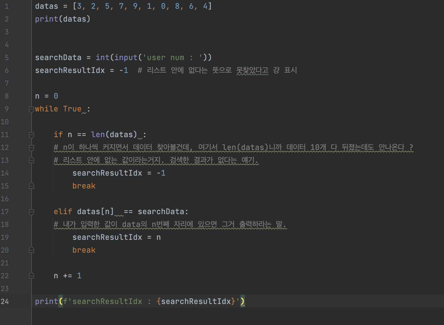 검색 성공과 실패는 마지막 인덱스 이전에 searchNum의 유무로 판별된다.