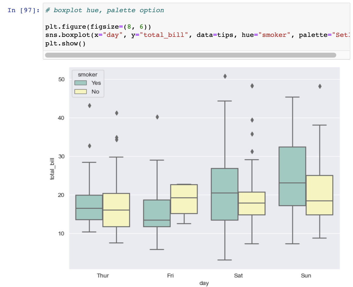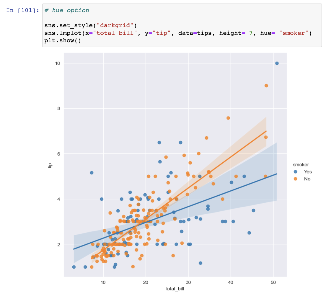 데이터 구분해주면서 상관관계 파악하기 편함. smoker 유무에 따라 표 보기 편해짐.