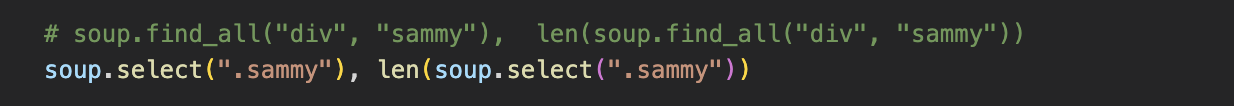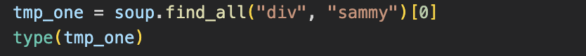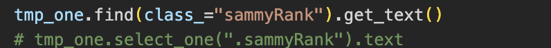 해당 페이지에서 얻고 싶은 정보를 클릭해보니 class 가 "sammy"인 값 하위에 있는 것을 확인했다.