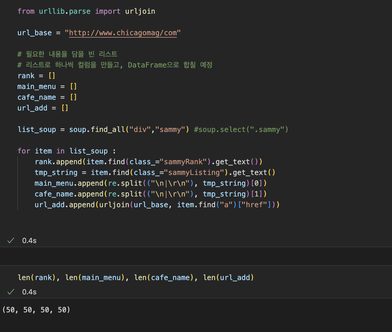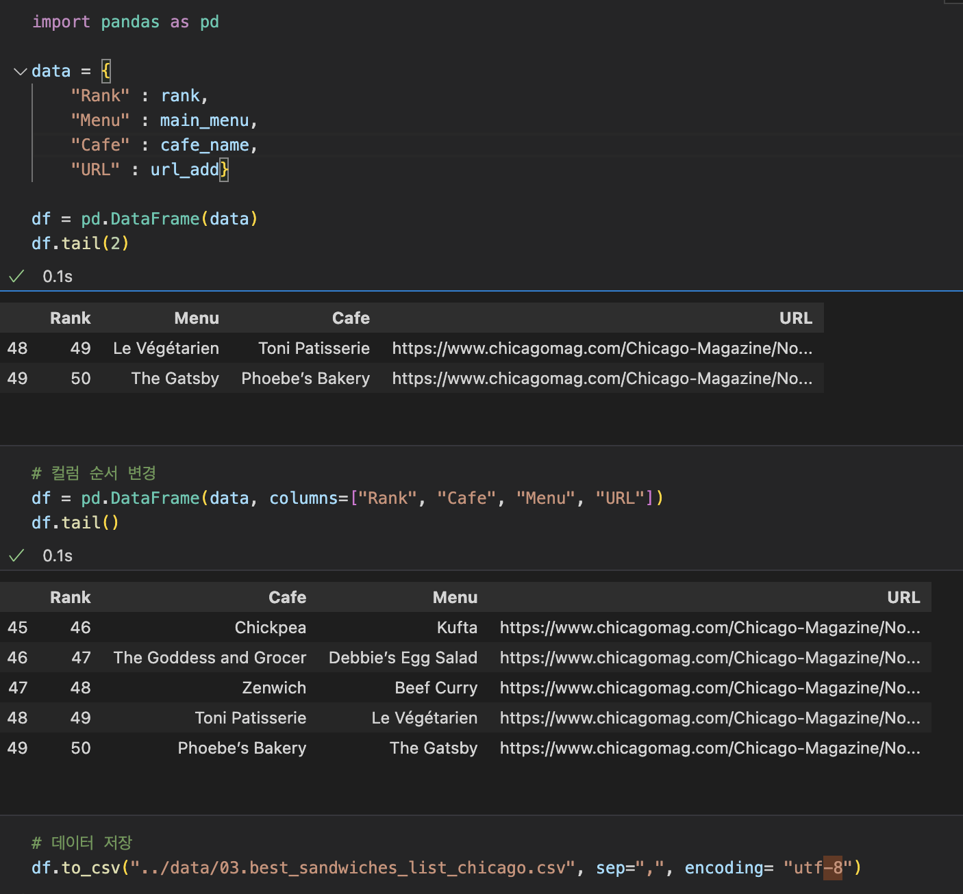 | 예제 3-2. 시카고 맛집 하위페이지 데이터 분석 + 지도 시각화 (0) | 2022.11.23 |