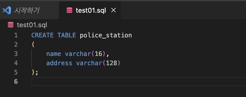 terminal에서 한번에 mysql -> database접속 -> vscode에서 작업한 test02.sql 파일 source 작업 할 수 있다.