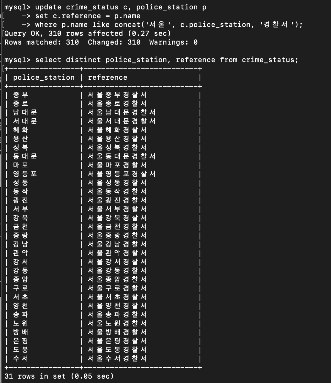 - crime_status의 reference와 police_station의 name은 같다고 set 해준 뒤, 해당 내용을 update 한다.