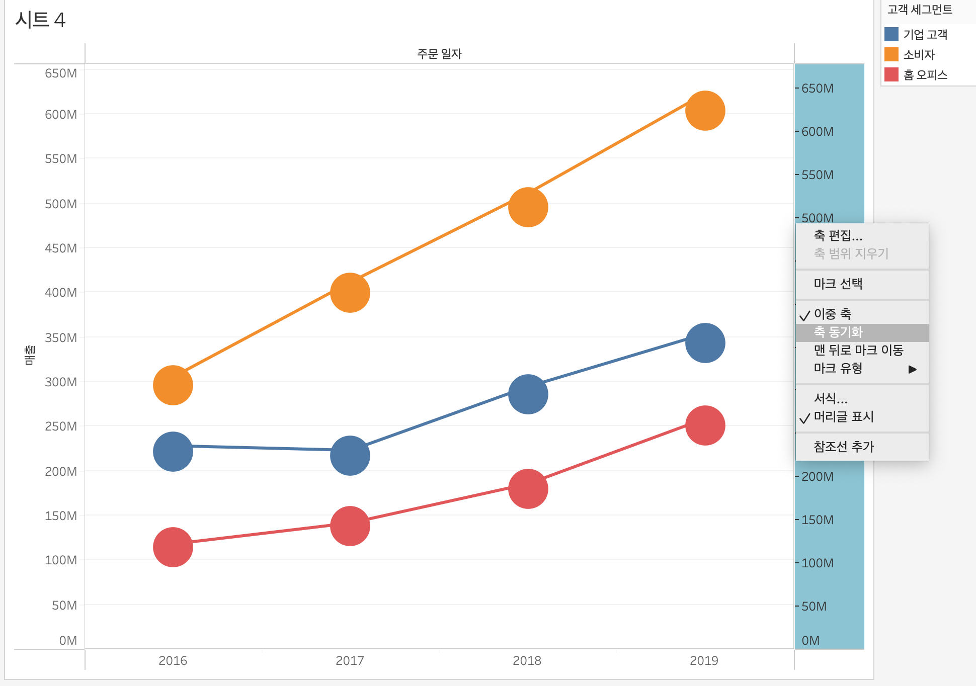 우측의 매출 탭에서 축 동기화를 선택해준다.