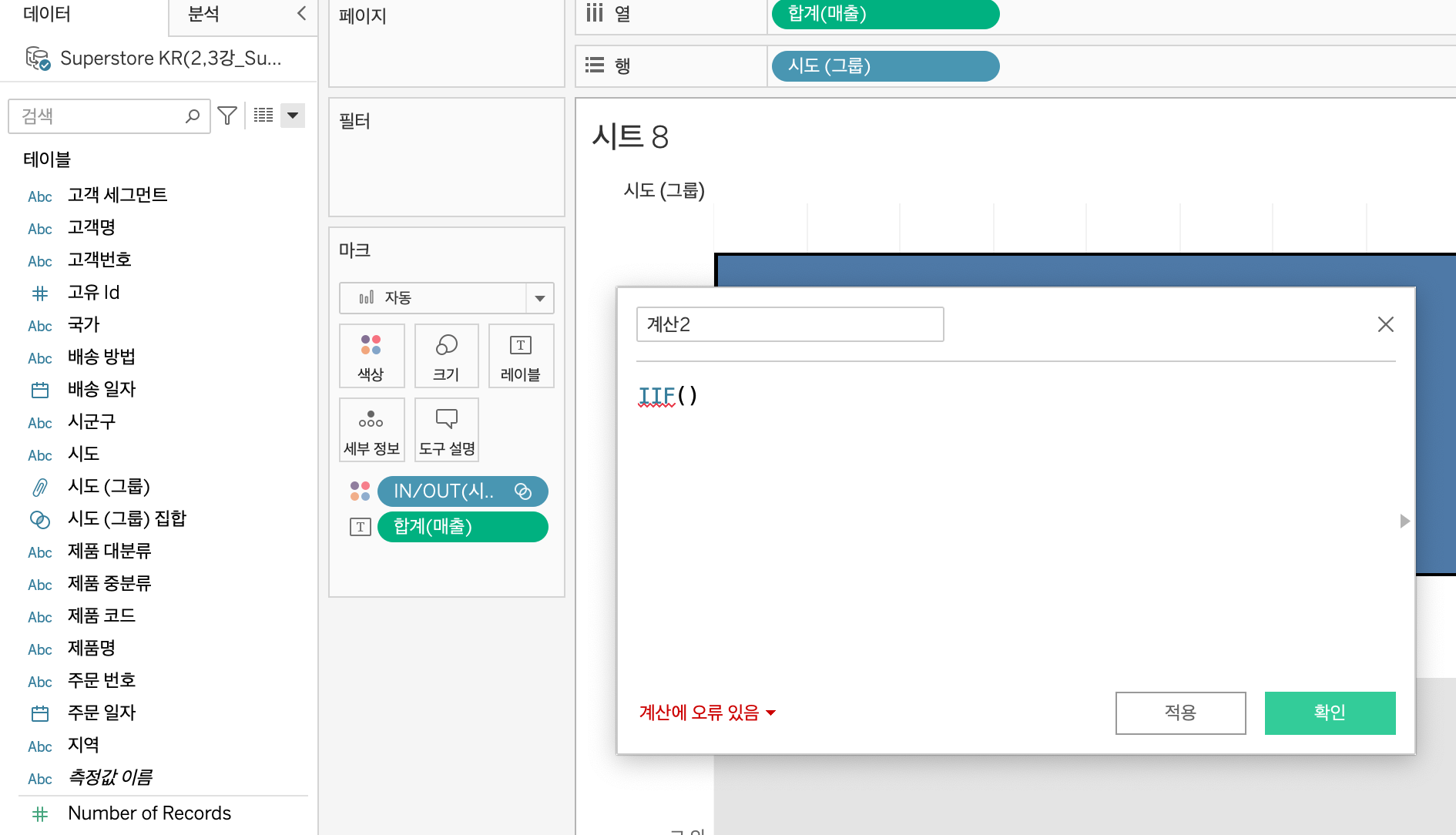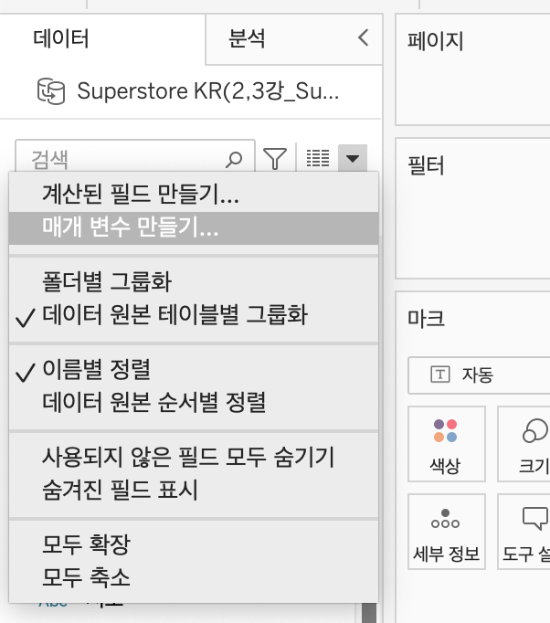 생성했던 매개변수를 색상에 넣어주고, 계산 필드를 레이블에 넣어준다.