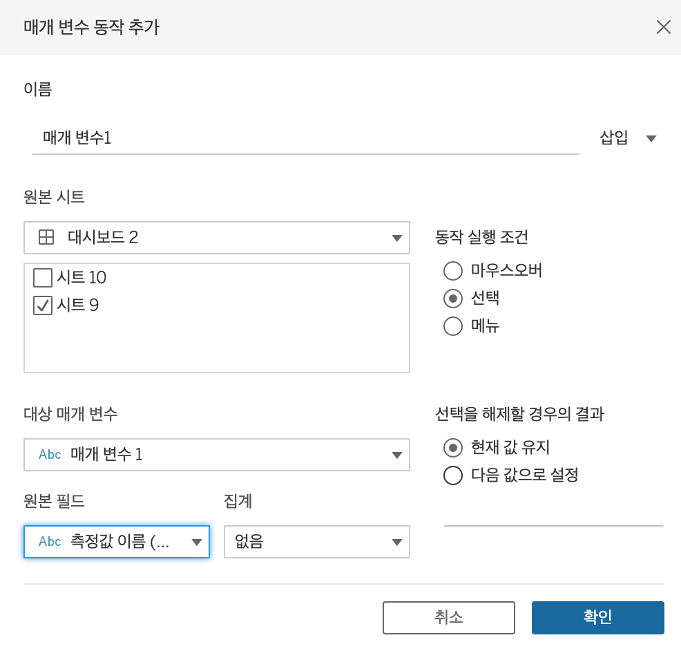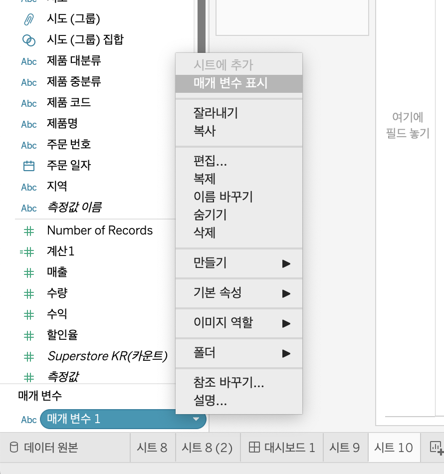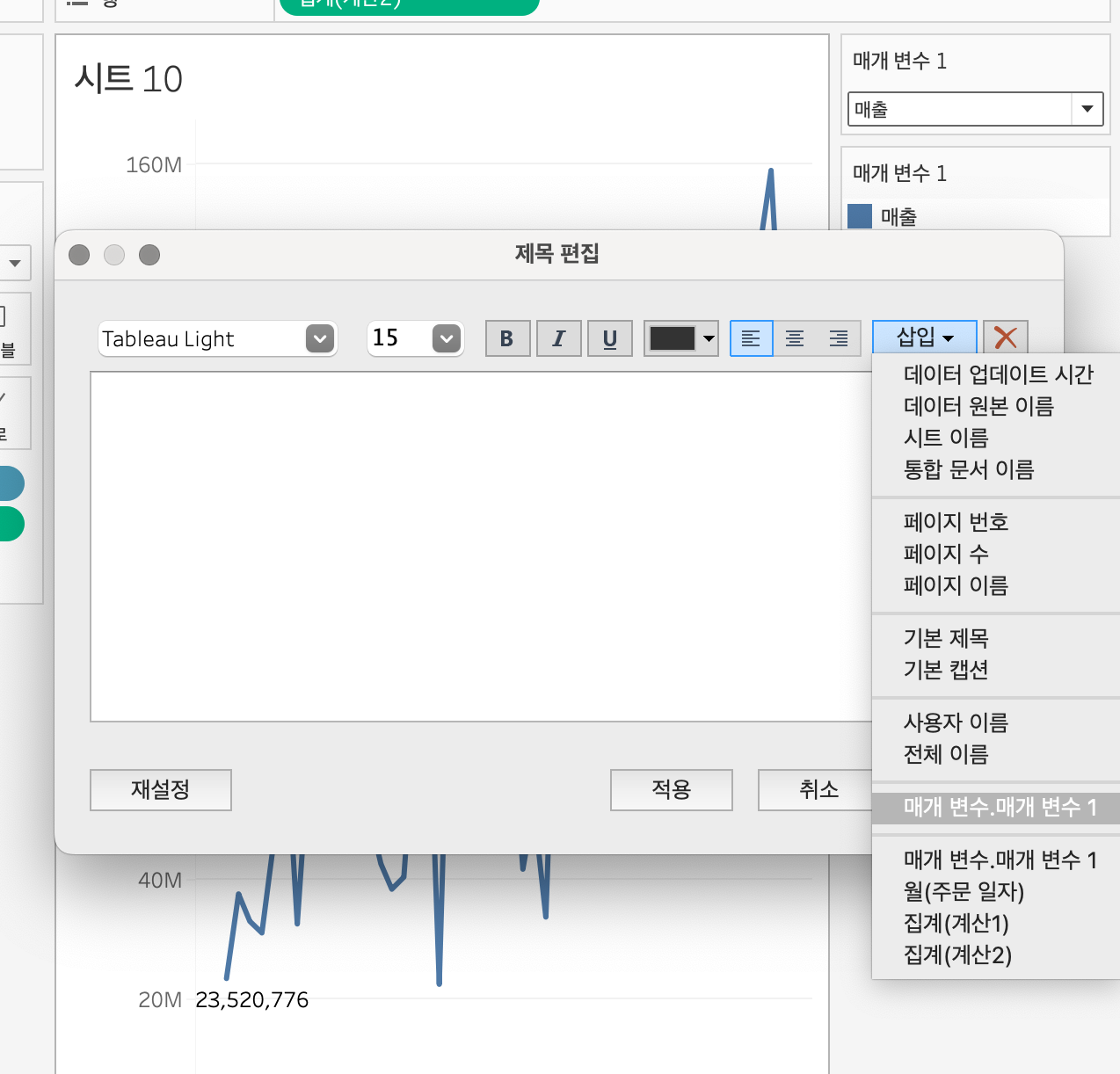시트10 우클릭 -> 제목 편집 -> 기존 제목은 지우고 삽입 (매개변수)를 지정해주면 된다.