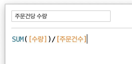 일반적으로 주문건수는 데이터 원본에 포합되지 않는 경우가 많아 별도로 만들어 주어야 한다.